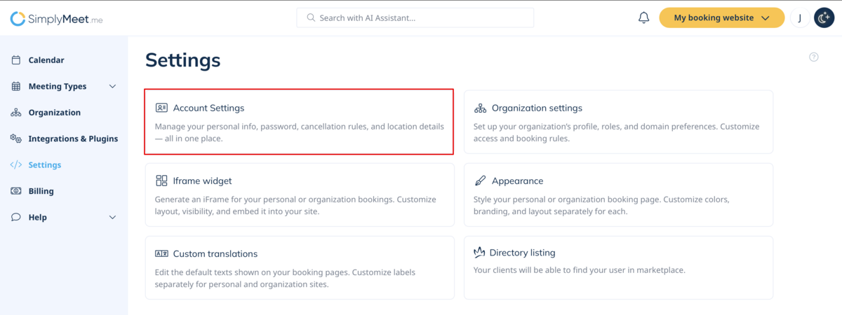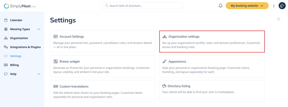 [[File: | [[File:Sm organization settings new.png|1200px|center|link=https://help.simplymeet.me/images/a/a3/Sm_organization_settings_new.png]] | ||