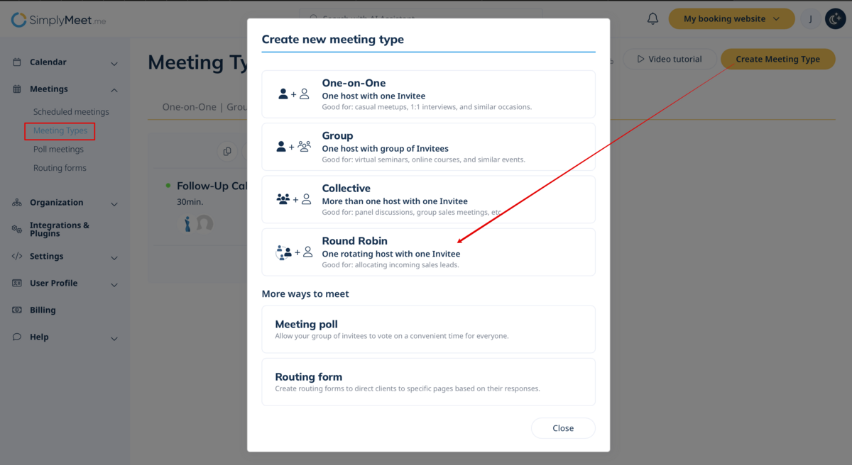 2. Create Round Robin Meeting Type in Meeting Types.